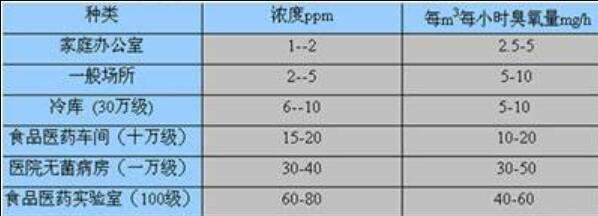 V3的確定:根據實踐,歸納出較為可靠的經驗公式如下:V3≈HVAC系統循環總風量m3/h*25%(常規新風更換率)×10-20%(保持潔凈區正壓補充的新風量)×39%(應用臭氧時臭氧半衰期的預算值),即V3=HVAC系統循環總風量×1~2%。